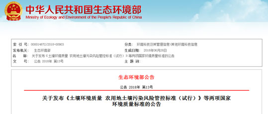 關于發布《土壤環境質量 農用地土壤污染風險管控標準(試行)》等兩項國家環境質量標準的公告